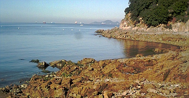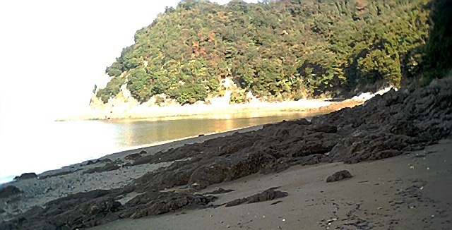 岩ぼこと砂のまざる海岸を西へ歩いた。
