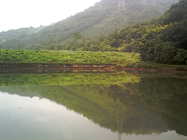 道を登ると池。