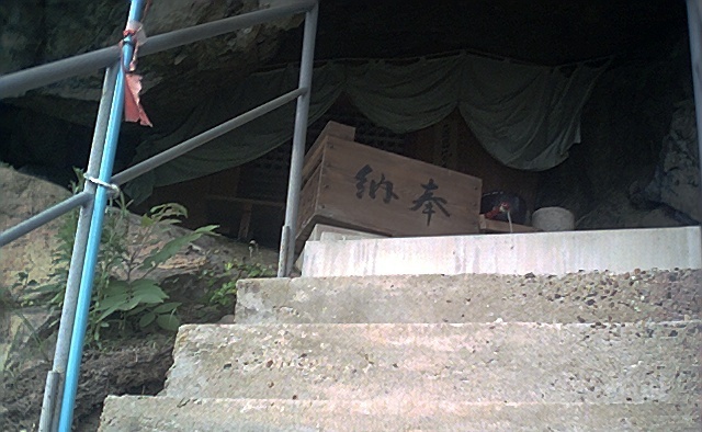 岩のまんなかにお地蔵さん。