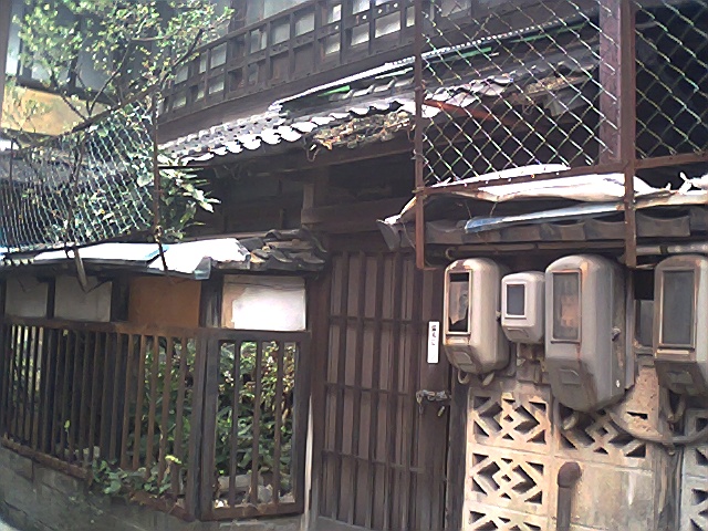 瓦屋根と格子戸・格子窓の家がながくつづき、横道は暗く狭くところどころ犬のフンがあった。