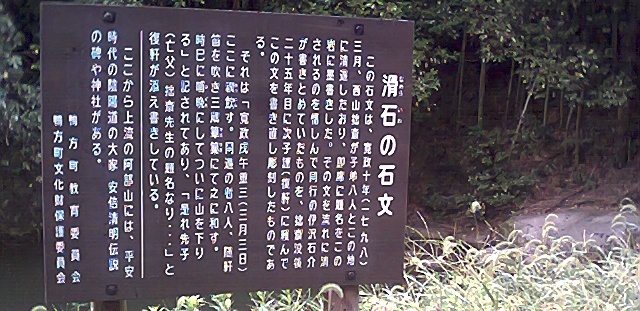 清流の岩に文字。