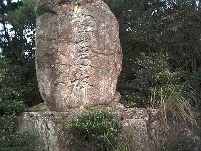 標識により林をかきわけて山に入ると記念碑がある。