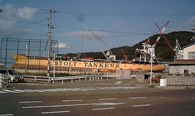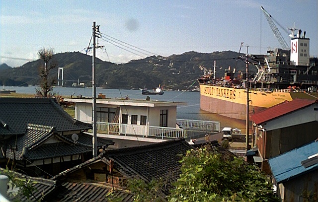 しまなみ海道名物の造船所がはやくも現れる。迫る。