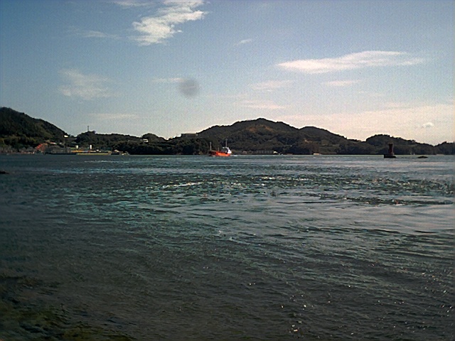 海峡全体に渦と波がたっている。