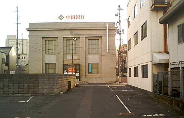 中銀の笠岡支店は駅前にどっしりと構えている。