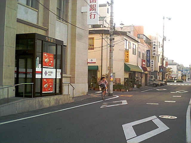 レコード店、富士商工の前から中銀を見る。