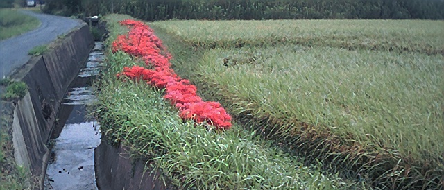 田んぼには彼岸花が満開。