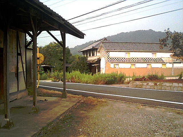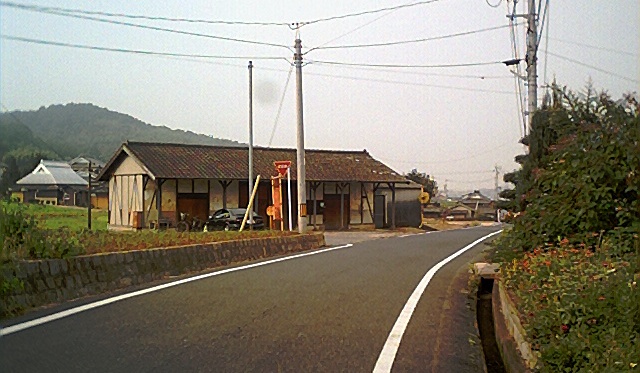 旧道・バスどおり。バス停の標識は鉄がさび付いていたが「吉田」。