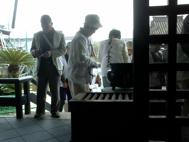 (教積院。白衣装の集団だった。全員で拝みだした。