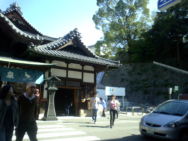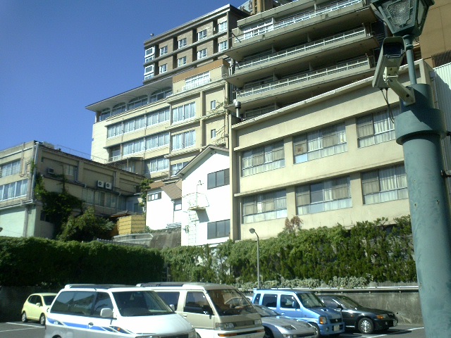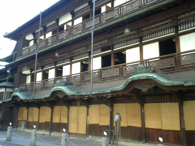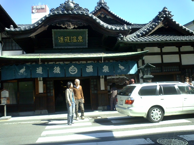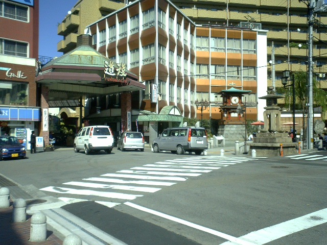 この城館のような道後温泉の本館に向かい左に行けば温泉ホテルの高層ビルがつづき、右に行けば?