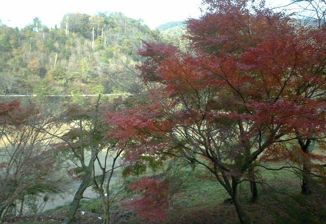 岩肌がむき出しだった、でもダムの廻りはモミジがきれい。