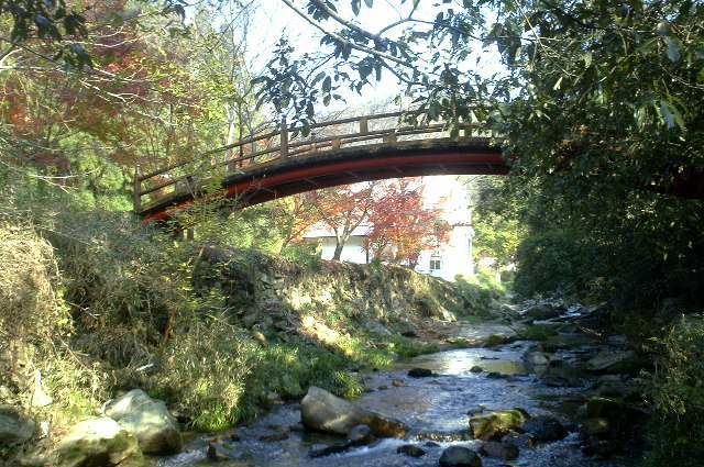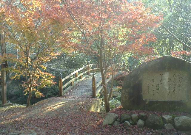 与謝野晶子の石碑があり、橋は欄干の赤い橋。