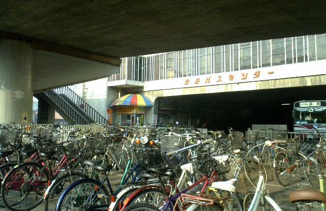 このコ線橋の下の自転車は説明するまでもなく、井笠ボールの客ではない。