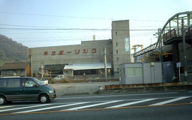 コ線橋のうえから見る左手「井笠ボーリング」。