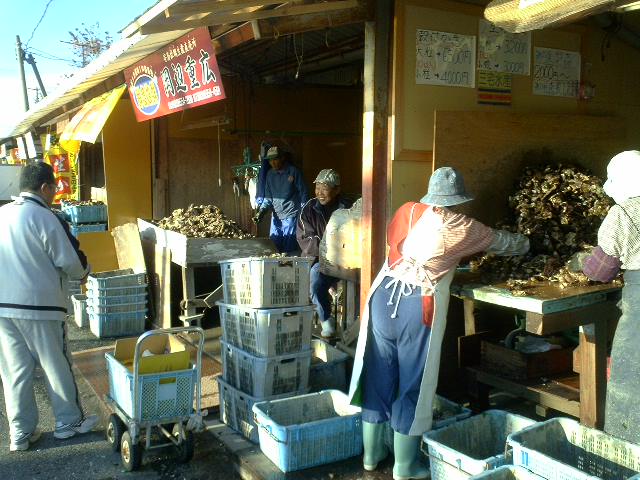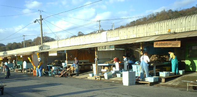牡蠣の作業小屋の隣に魚市場。