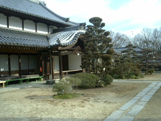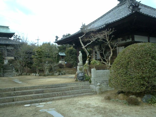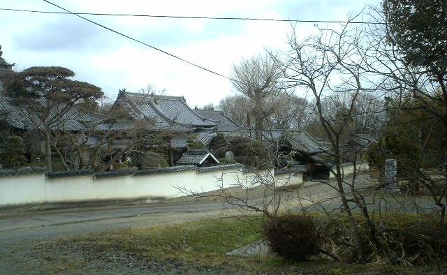 山の一本道をうえにうえに走っていくと白壁の寺だった。