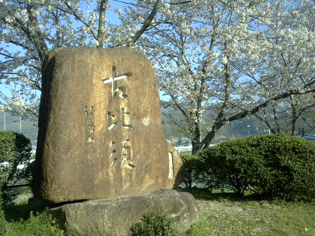 公園にはいっていったら隅に石碑が見えた。