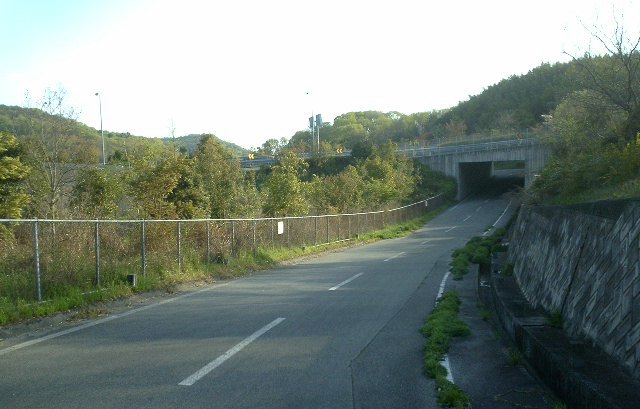 山陽道・笠岡インターをくぐる旧・井笠鉄道道。