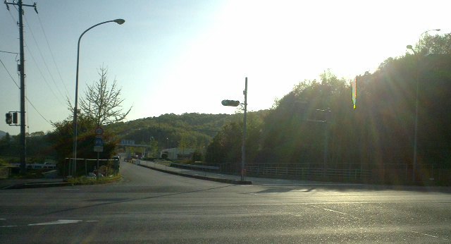 インターと県道の交差点はAM7:00ちょうど、信号が点滅から切り替わる。