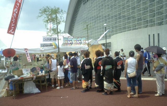 ドームの外には物産展とテント村。