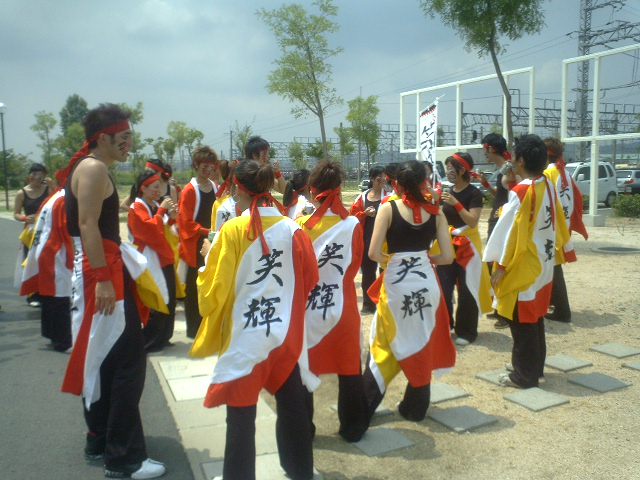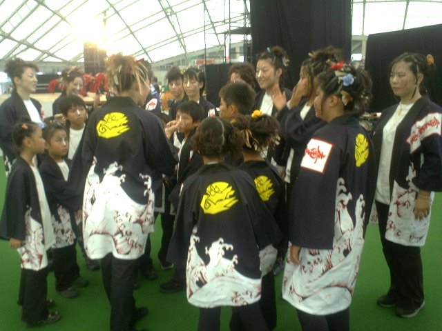 見物人に混ざり出場チームが会場にあちこち。