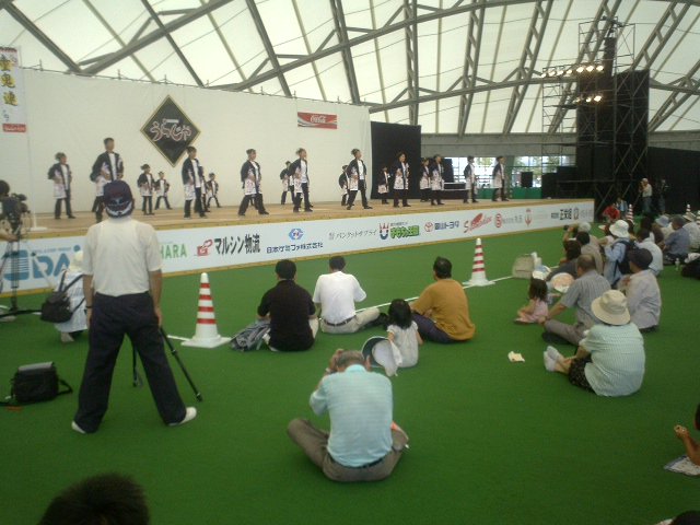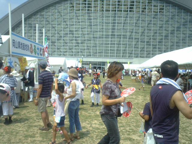 これが「岡山ドーム」のなか。本日はうらじゃの大音響。