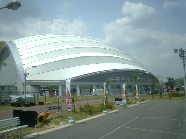 岡山ドームの建物は完全な円形と思っていたが、