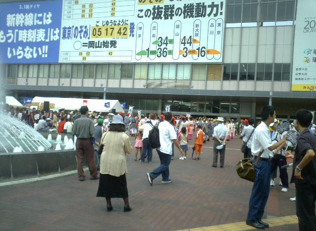 岡山駅で降りて改札口をでると、駅構内にまで響く音響。