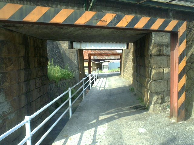 (笠岡市金浦、その暗渠のうえ。金浦は鉄道を挟み鉄南・鉄北と分かれる。右手が鉄北。)