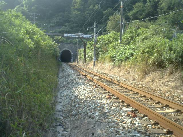 (笠岡市金浦、下り側トンネル。ついでながら今日えいちゃんは踏み切りでない線路をわたった。何十年ぶりだろう、ひょっとしたら初体験だったかもしれない。)