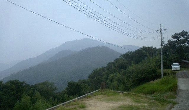 晴れていれば瀬戸内海がきれいに見えるけど、今日は曇りで霞。