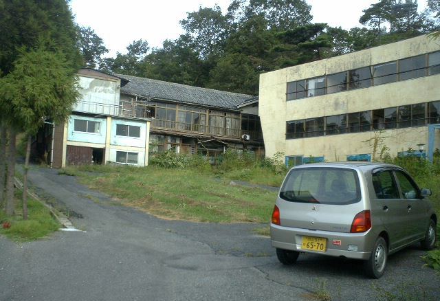 「かんぽの宿」をすぎて走れば廃墟の旅館・休憩所・飯屋がつづく。