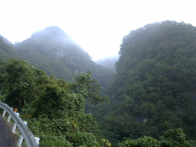 とんがり山や石灰がむき出した谷を見ながら走る。