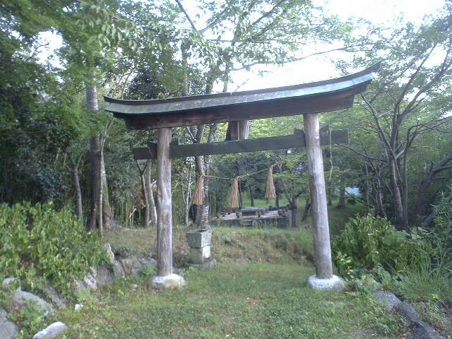 城跡には神社があり、この鳥居は木製。