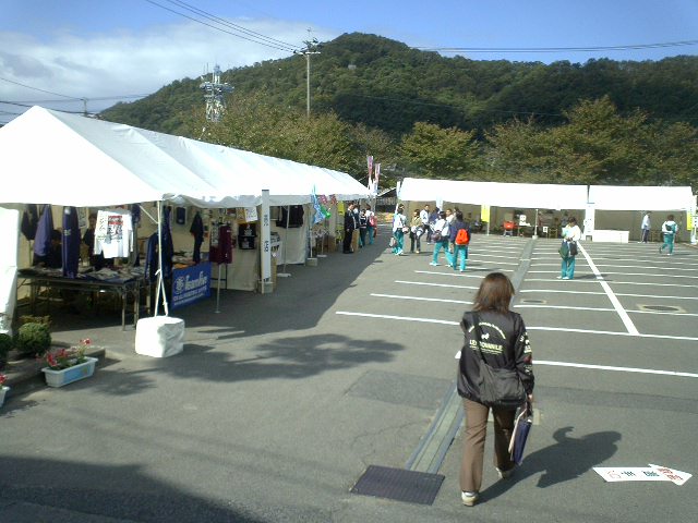 すぐ受付テントがある、はんぶんは制服姿の笠岡商の女性徒。