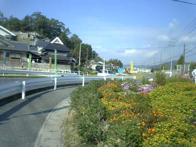 (こちら井原への道。北川駅を出てまもなくこの花壇から旧井笠鉄道は矢掛・井原のニ方向にレールが分れた。)
