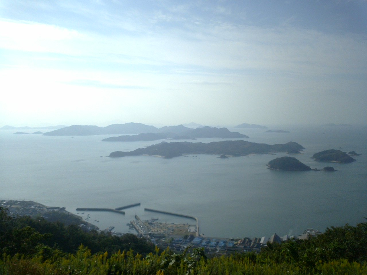 塚の丸への山道を上るのはほんと、わくわくする。 山頂に行けば、今日はどういう絶景が待っているんだろう? そういうワクワク。 笠岡市街地方向。 |
