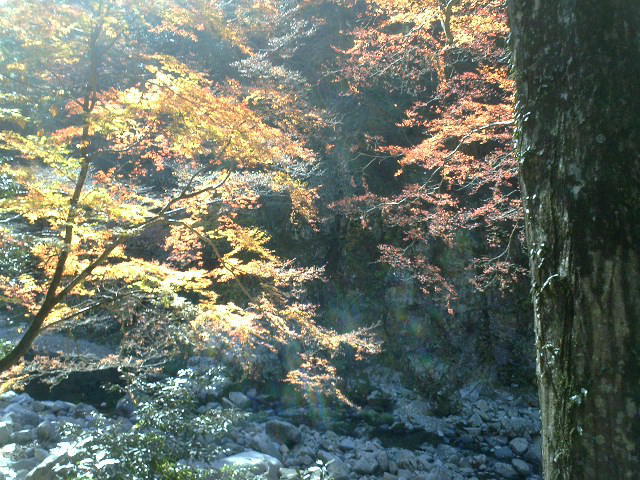 「ひろい山野峡のうちで、いちばんモミジがきれなトコは?」