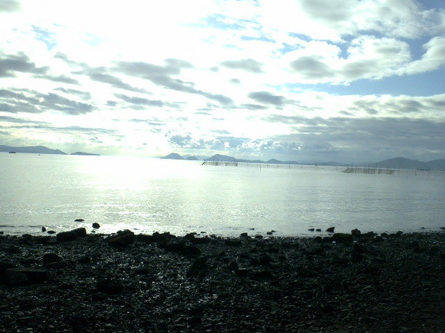 その海から前を見れば定置網の向こうに笠岡諸島・塩飽諸島が並んだり重なったり。