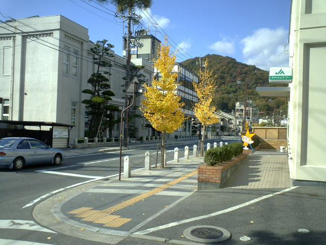 笠岡市の市木・イチョウは市役所まえの通りがイチョウ並木になっている。