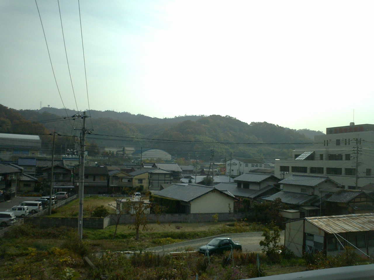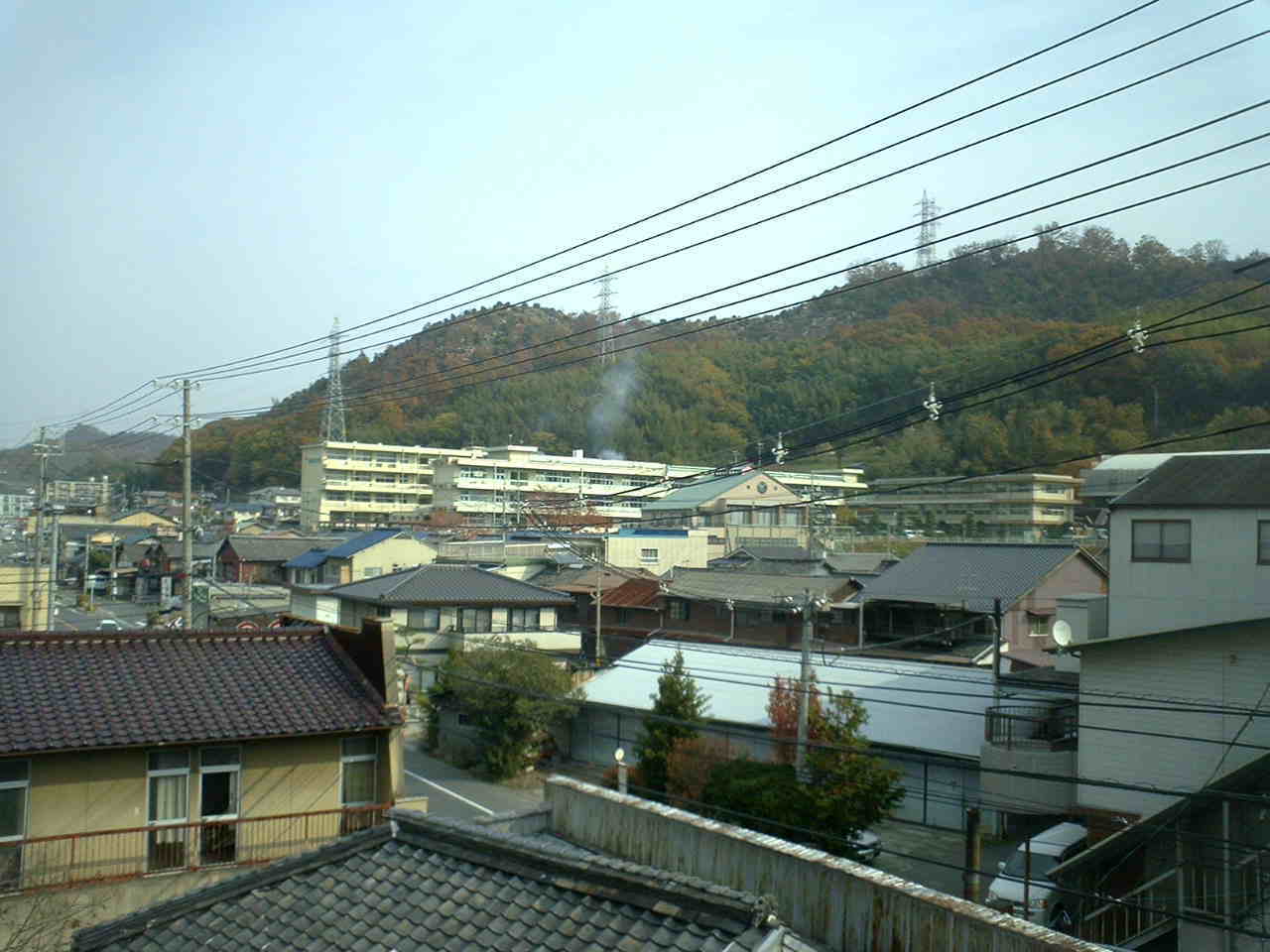中央病院からすこしうえから東をみれば笠岡商業高校と笠岡高校がみえる。 |