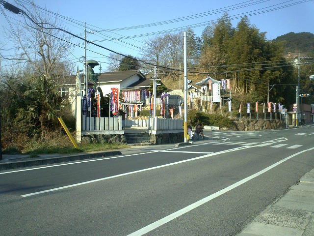 天神荘と天神さんの入り口にたつ「島の天神」。