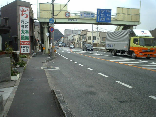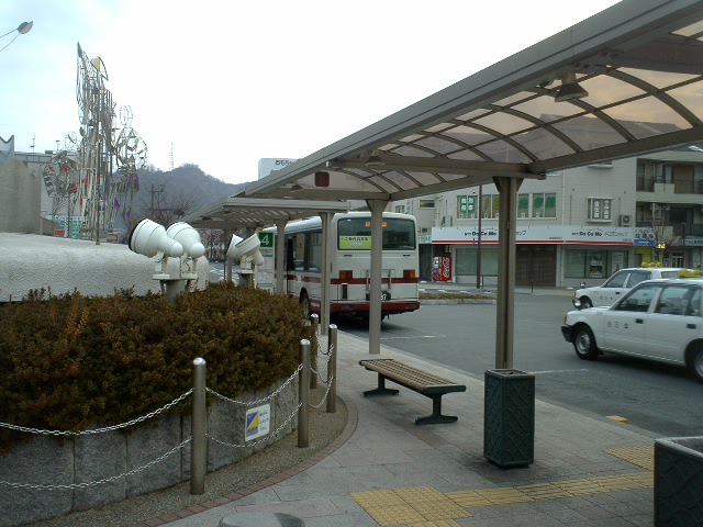 笠岡駅前のバス停は1・2・3・4番とあり、4番が二号線に出て東に走る。