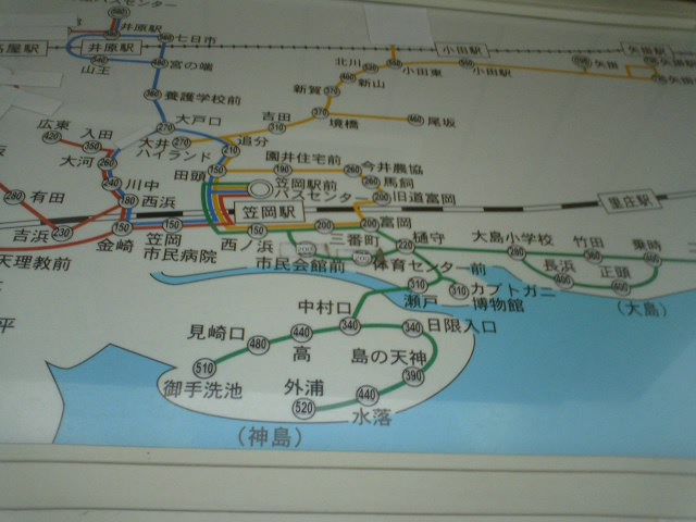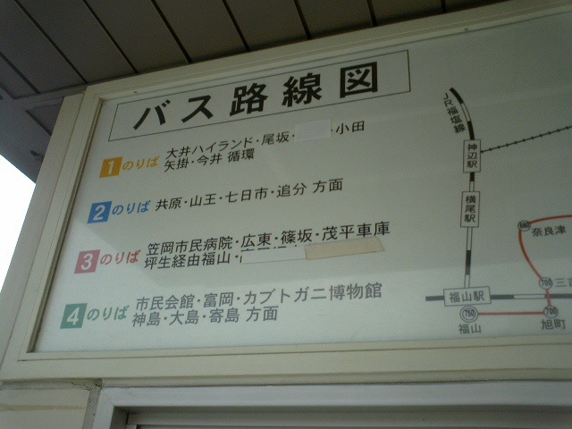 下の二枚の写真は笠岡駅前のバスセンターのもの。