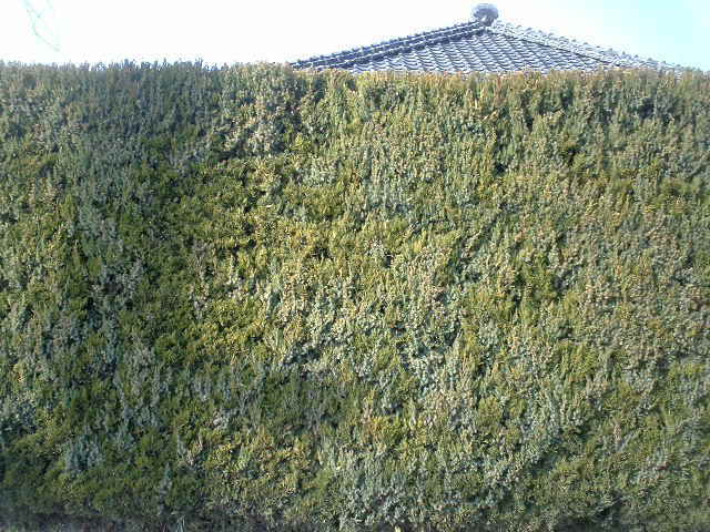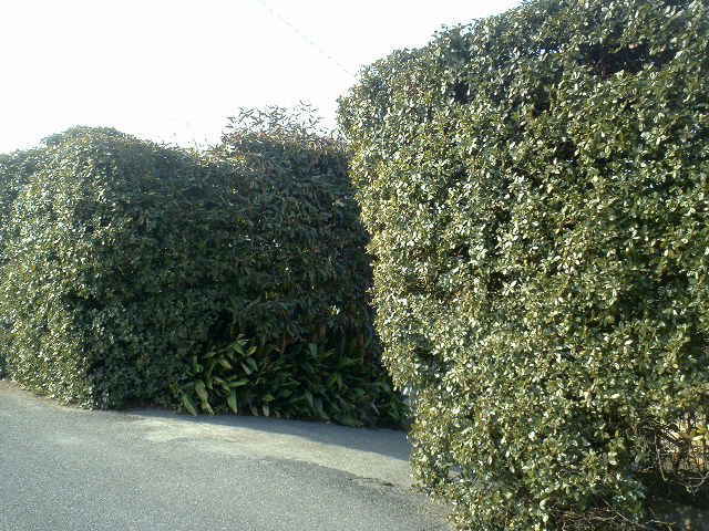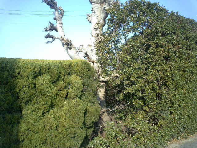 生垣の木の高さはまちまち。