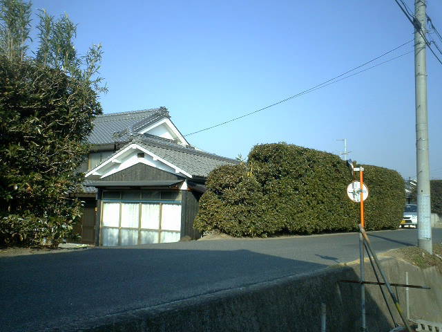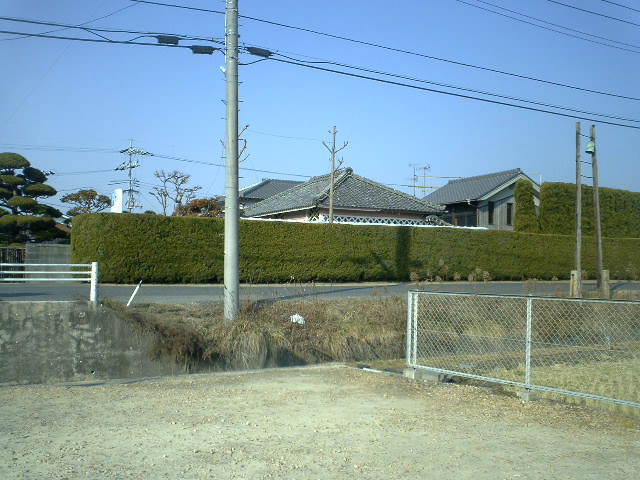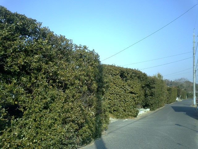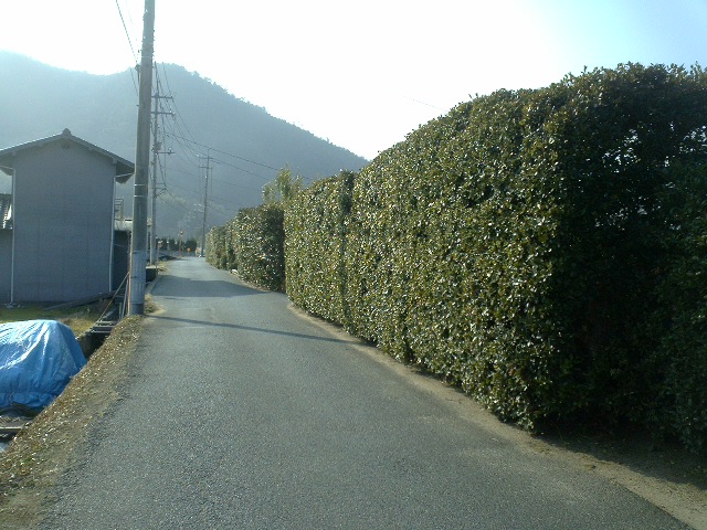 東から風がふきこみ、それを守るため家の上の堤防道に生垣として植えている。