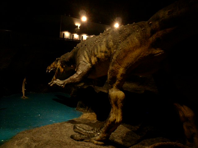 らせん状の通路には恐竜もいる。
