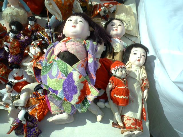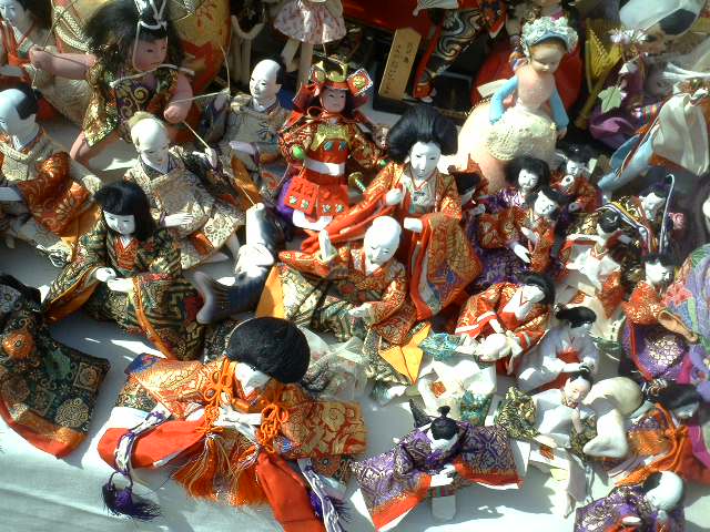 古くなったひな祭の人形が多い。