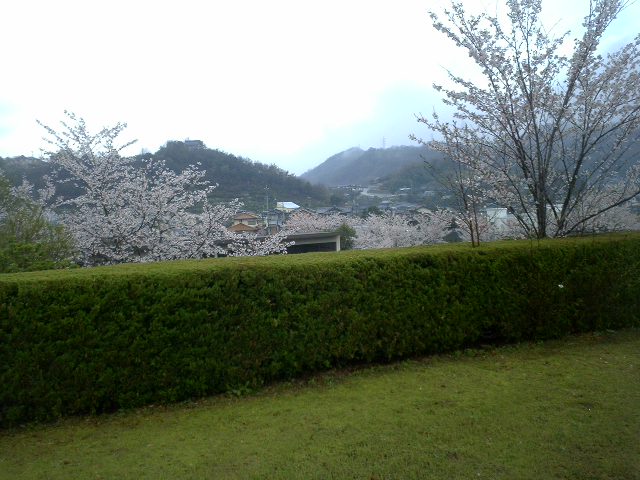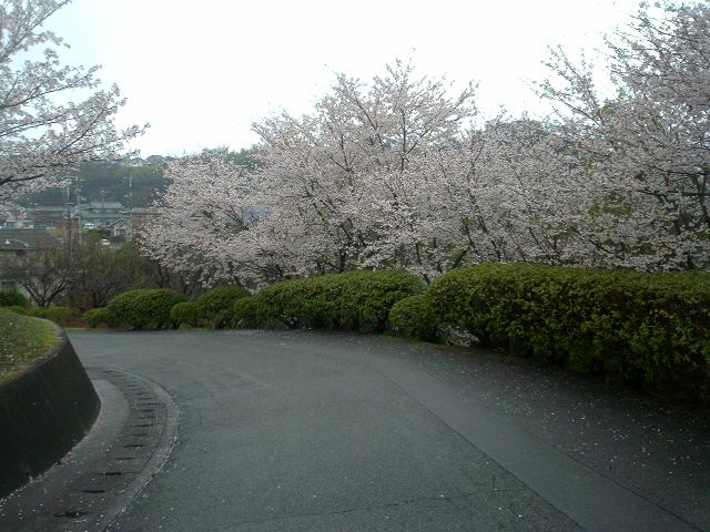 満開と同時に雨の日が二日つづいてはやくも散り始め。