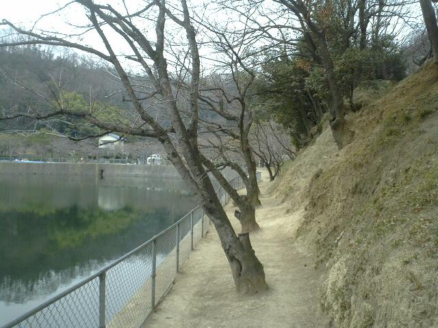 池の北側には桜の老木が続いている。